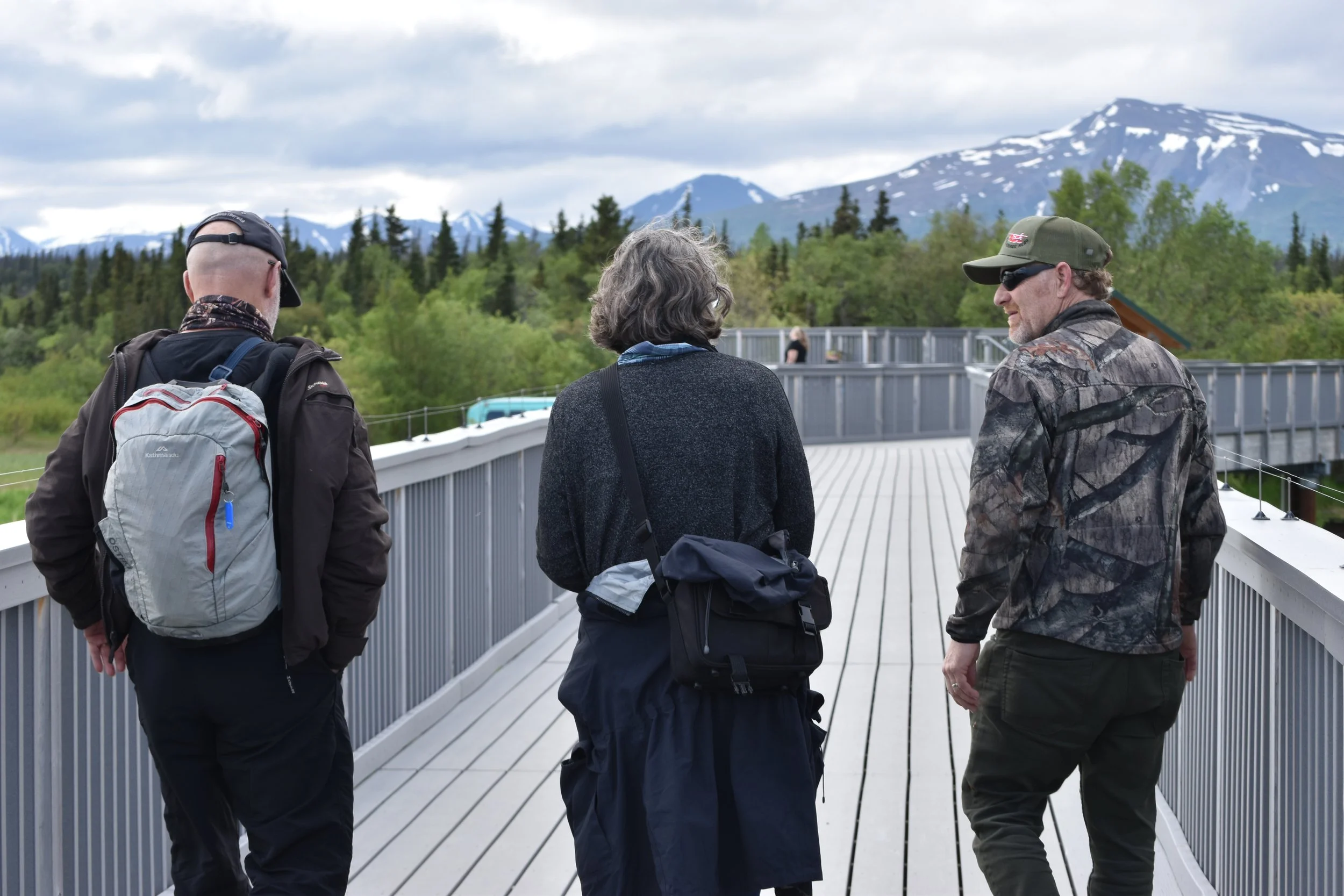 The trail includes dirt paths, elevated walkways, and occasionally muddy areas. Because bears also use these trails, visitors should expect occasional delays during bear jams. While parts of Brooks Camp are accessible, not all areas can accommodate wheelchairs or travelers with limited mobility. Floatplane boarding typically requires a step from the dock into the aircraft, and while assistance is available, it may be limited.